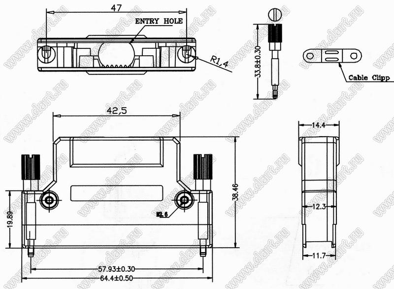 Спецификация: Круглый кабель с угловым входом 70° Кабельный зажим с защелками Задняя часть корпуса литая Предохранение от EMI / RFI Материалы: Корпус: оцинкованный никель поверх меди Защелка: фосфорная бронза никелированная Винты: медь никелированная Зажим кабеля: сталь никелированная