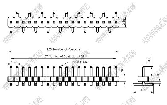 Штыри однорядные вертикальные для поверхностного (SMD) монтажа, шаг 1,27 мм, H=1,7 мм, тип 1