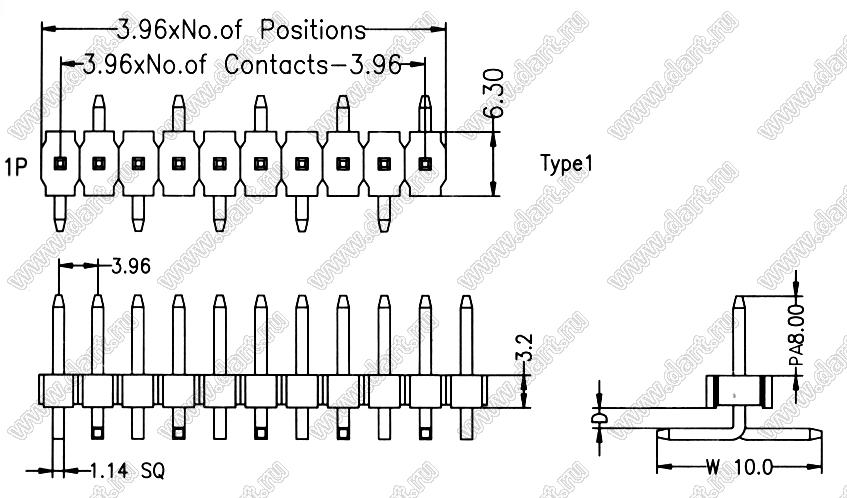 вилки однорядные SMD прямые тип 1, шаг 3,96 мм