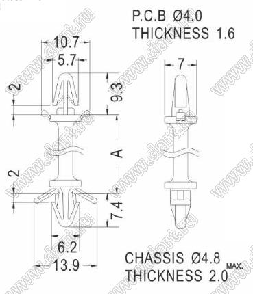 Диаметр отверстия в шасси d отв.: 4,8 мм