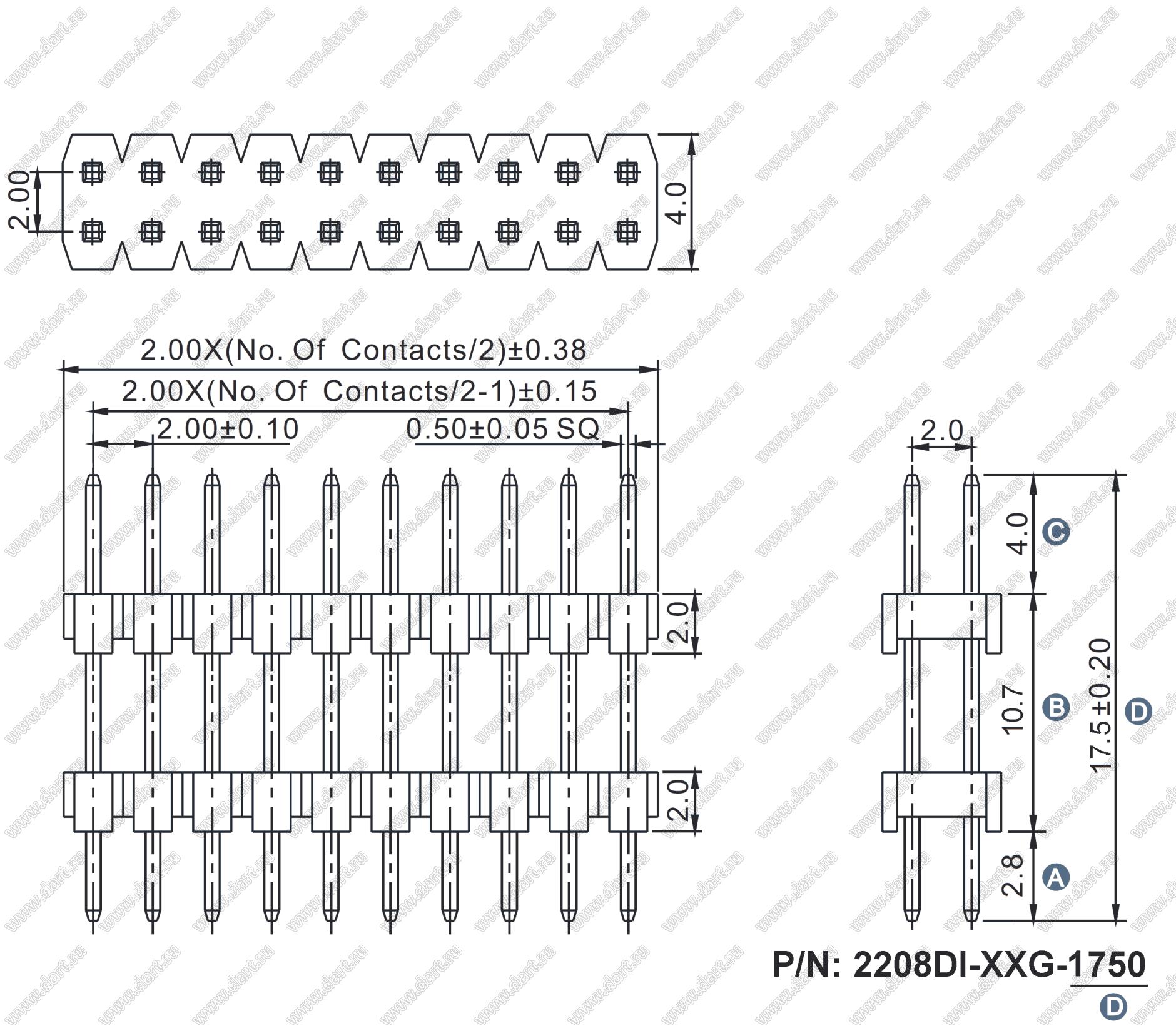 Шаг выводов шаг: 2.00x2.00 мм