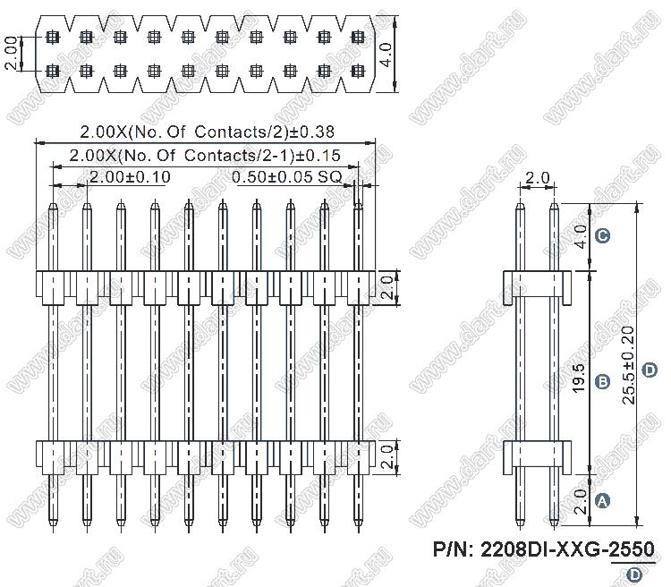 шаг 2,00x2,00 мм (разъемы межплатные штыревые и гнезда для них)
