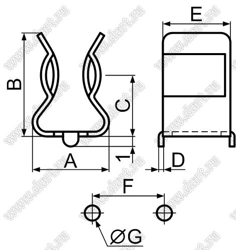 Каталог > Фурнитура для электронных устройств > Держатели предохранителей > Держатели предохранителей (плавких вставок) на плату > Держатели на плату для предохранителей (плавких вставок) 6х30 (6,3x32) мм > FUC-14