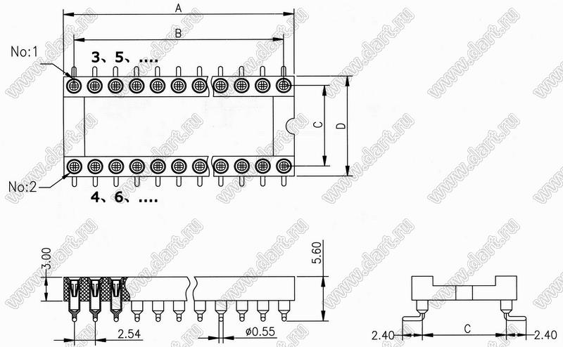 Каталог > Электронные компоненты, радиодетали > Разъёмы (соединители, переходники) > Панельки для микросхем > BL7210-3xxxM (DS1001-02-xxN) серия > BL7210-30324M (DS1001-02-24N)