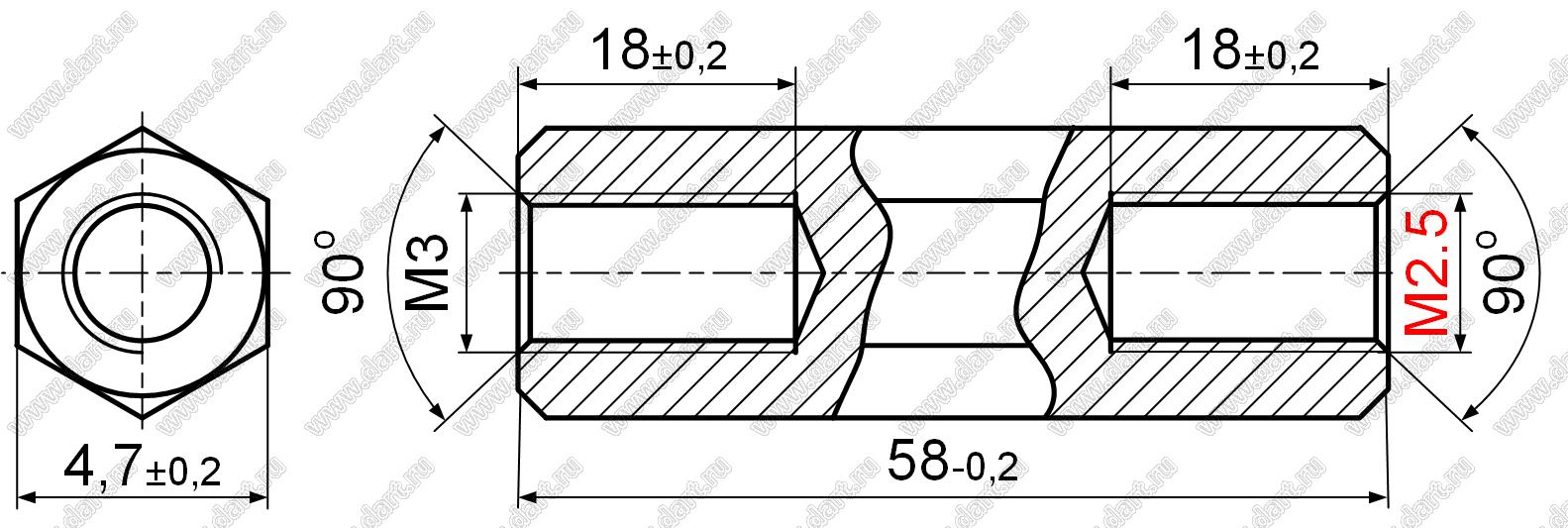 Каталог > Фурнитура для электронных устройств > Крепеж металлический (метизы) и пластиковый > Стойки резьбовые > Стойки резьбовые металлические > PCHSS серия > PCHSS3.0/2.5 серия > PCHSS-58A
