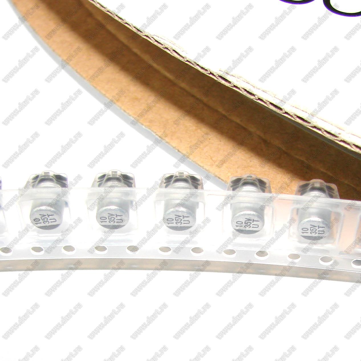 конденсатор электролитический SMD (для поверхностного монтажа); 2000ч; 10мкФ; 35В; (5x5,7)мм; -55...+105°C