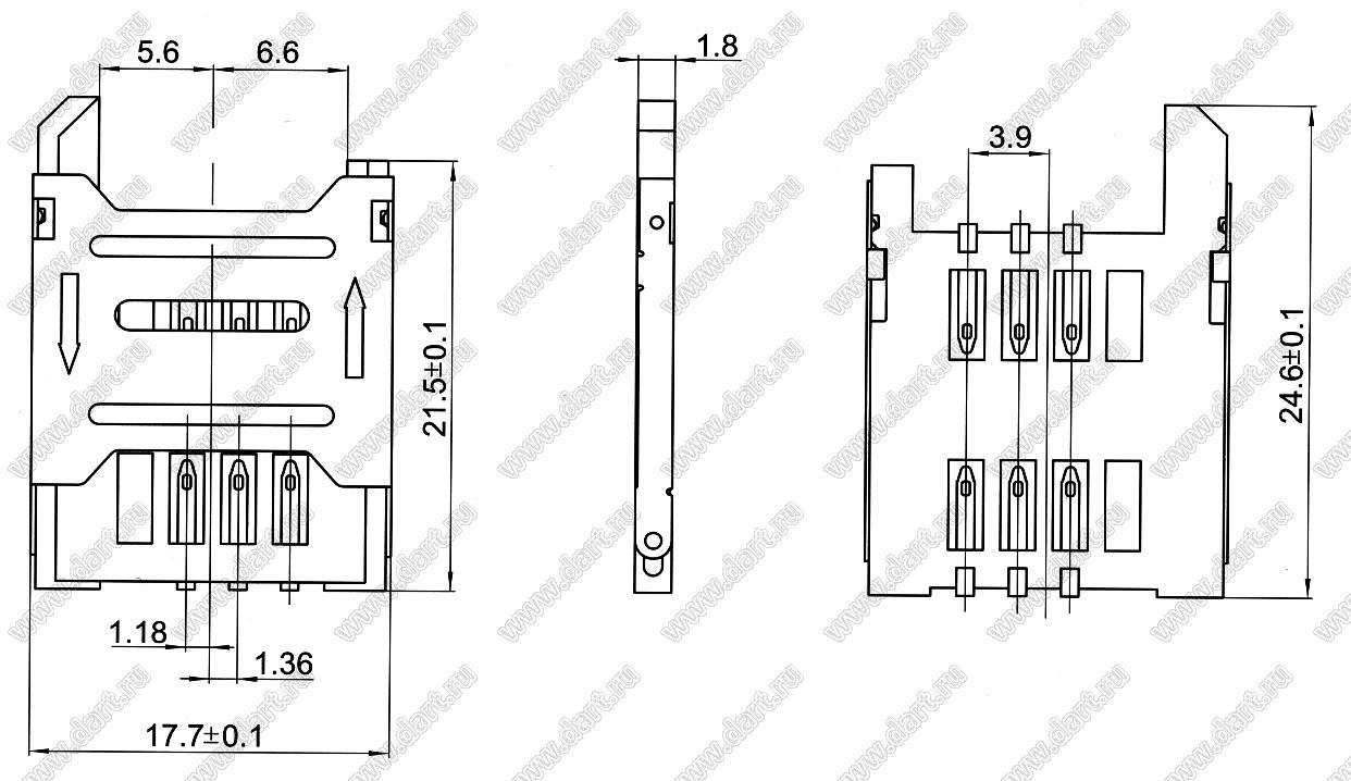 Каталог > Электронные компоненты, радиодетали > Разъёмы (соединители, переходники) > Держатели SIM карт и карт памяти > Держатели SIM карт > Держатели мини-SIM карт > SIM-2.54-3