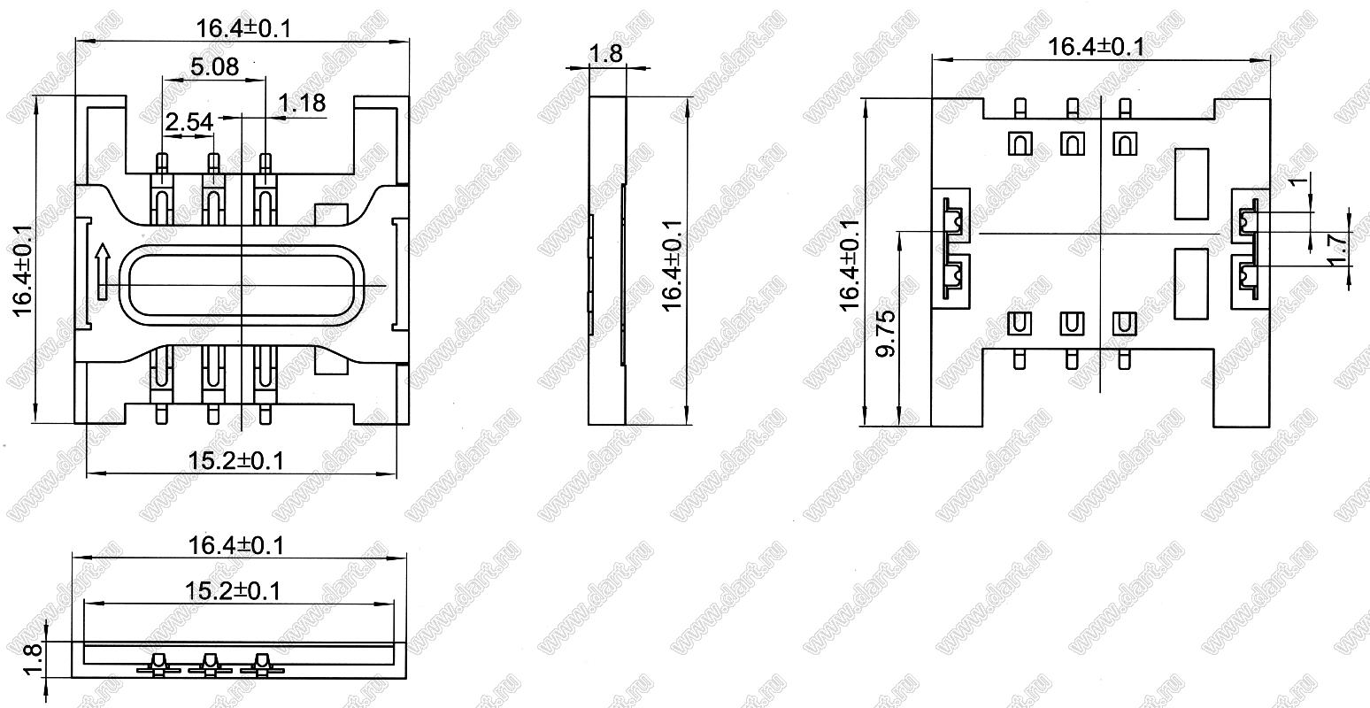 Каталог > Электронные компоненты, радиодетали > Разъёмы (соединители, переходники) > Держатели SIM карт и карт памяти > Держатели SIM карт > Держатели мини-SIM карт > SIM-2.54-1.8B (DS1138-07, L-KLS1-SIM-044A-6P-H2.2-R)
