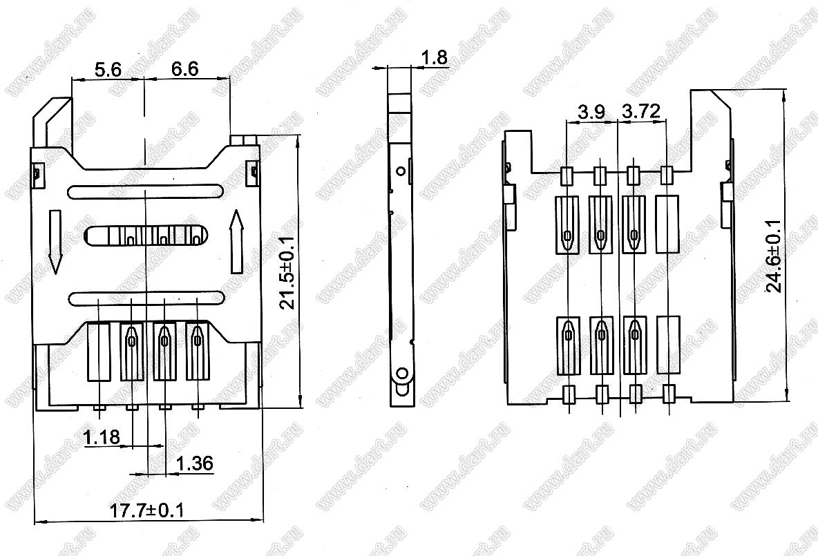 Каталог > Электронные компоненты, радиодетали > Разъёмы (соединители, переходники) > Держатели SIM карт и карт памяти > Держатели SIM карт > Держатели мини-SIM карт > SIM-2.54-3A