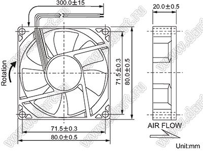 Каталог > Корпусные и установочные изделия > Устройства охлаждения > Вентиляторы > Вентиляторы осевые постоянного тока (DC) > DF82 серия (80x80x20мм) > DF82S24L
