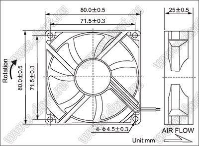 Каталог > Корпусные и установочные изделия > Устройства охлаждения > Вентиляторы > Вентиляторы осевые постоянного тока (DC) > DF80 серия (80x80x25мм) > DF80S24M