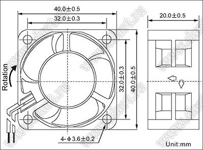 Каталог > Корпусные и установочные изделия > Устройства охлаждения > Вентиляторы > Вентиляторы осевые постоянного тока (DC) > DF42 серия (40x40x20мм) > DF42D24M