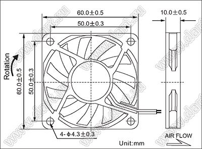 Каталог > Корпусные и установочные изделия > Устройства охлаждения > Вентиляторы > Вентиляторы осевые постоянного тока (DC) > DF61 серия (60x60x10мм) > DF61D24L