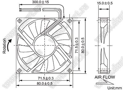 Каталог > Корпусные и установочные изделия > Устройства охлаждения > Вентиляторы > Вентиляторы осевые постоянного тока (DC) > DF81 серия (80x80x15мм) > DF81D12H