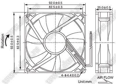 Каталог > Корпусные и установочные изделия > Устройства охлаждения > Вентиляторы > Вентиляторы осевые постоянного тока (DC) > DF92 серия (92x92x25мм) > DF92D12M