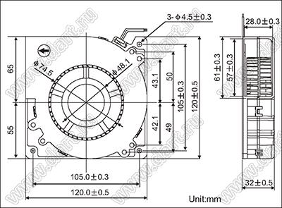 Каталог > Корпусные и установочные изделия > Устройства охлаждения > Вентиляторы > Вентиляторы радиальные (центробежные) постоянного тока (DC) > DF12032 серия (120x120x32мм) > DF12032D12H