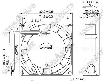 Каталог > Корпусные и установочные изделия > Устройства охлаждения > Вентиляторы > Вентиляторы осевые переменного тока (AC) > AF8025 серия (80x80x25мм) > AF8025HA2SL(F8025A2SL,)
