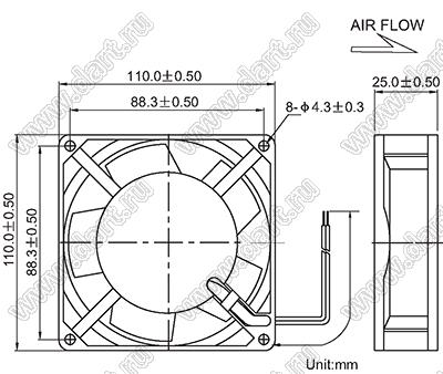 Каталог > Корпусные и установочные изделия > Устройства охлаждения > Вентиляторы > Вентиляторы осевые переменного тока (AC) > AF11025 серия (110x110x25мм) > AF11025HA2SL