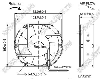 Каталог > Корпусные и установочные изделия > Устройства охлаждения > Вентиляторы > Вентиляторы осевые переменного тока (AC) > AF17251-1 серия (172x150x51мм) > AF17251HA1BT