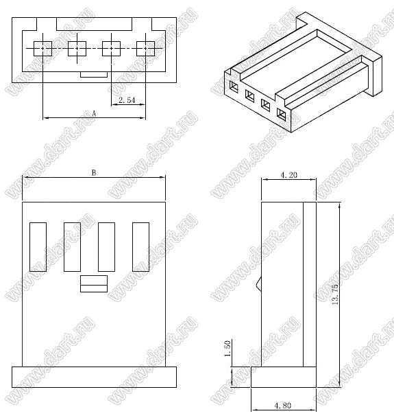 Каталог > Электронные компоненты, радиодетали > Разъёмы (соединители, переходники) > Разъемы кабель-плата > Шаг 2,54мм > A2543H-xxP серия > A2543H-08P