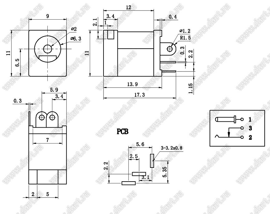 Каталог > Электронные компоненты, радиодетали > Разъёмы (соединители, переходники) > Разъемы вторичного (низковольтного) DC питания > DC гнезда (вторичного низковольтного питания) > DC-012-2.0