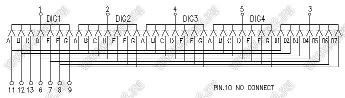 Каталог > Оптоэлектроника и индикация > Индикаторы светодиодные (сегментные дисплеи, матрицы, шкалы, светящиеся поля) > Цифровые и цифро-буквенные cветодиодные сегментные индикаторы (дисплеи) > 4-разрядные сегментные индикаторы > 4-разр. 0.4 дюйм. 7-сегм. 4403 серия > BJ4403AE