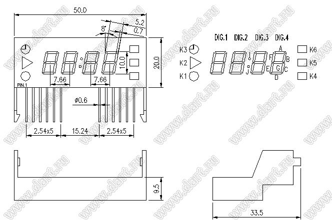 Каталог > Оптоэлектроника и индикация > Индикаторы светодиодные (сегментные дисплеи, матрицы, шкалы, светящиеся поля) > Цифровые и цифро-буквенные cветодиодные сегментные индикаторы (дисплеи) > 4-разрядные сегментные индикаторы > 4-разр. 0.4 дюйм. 7-сегм. 486A серия > BJ486A
