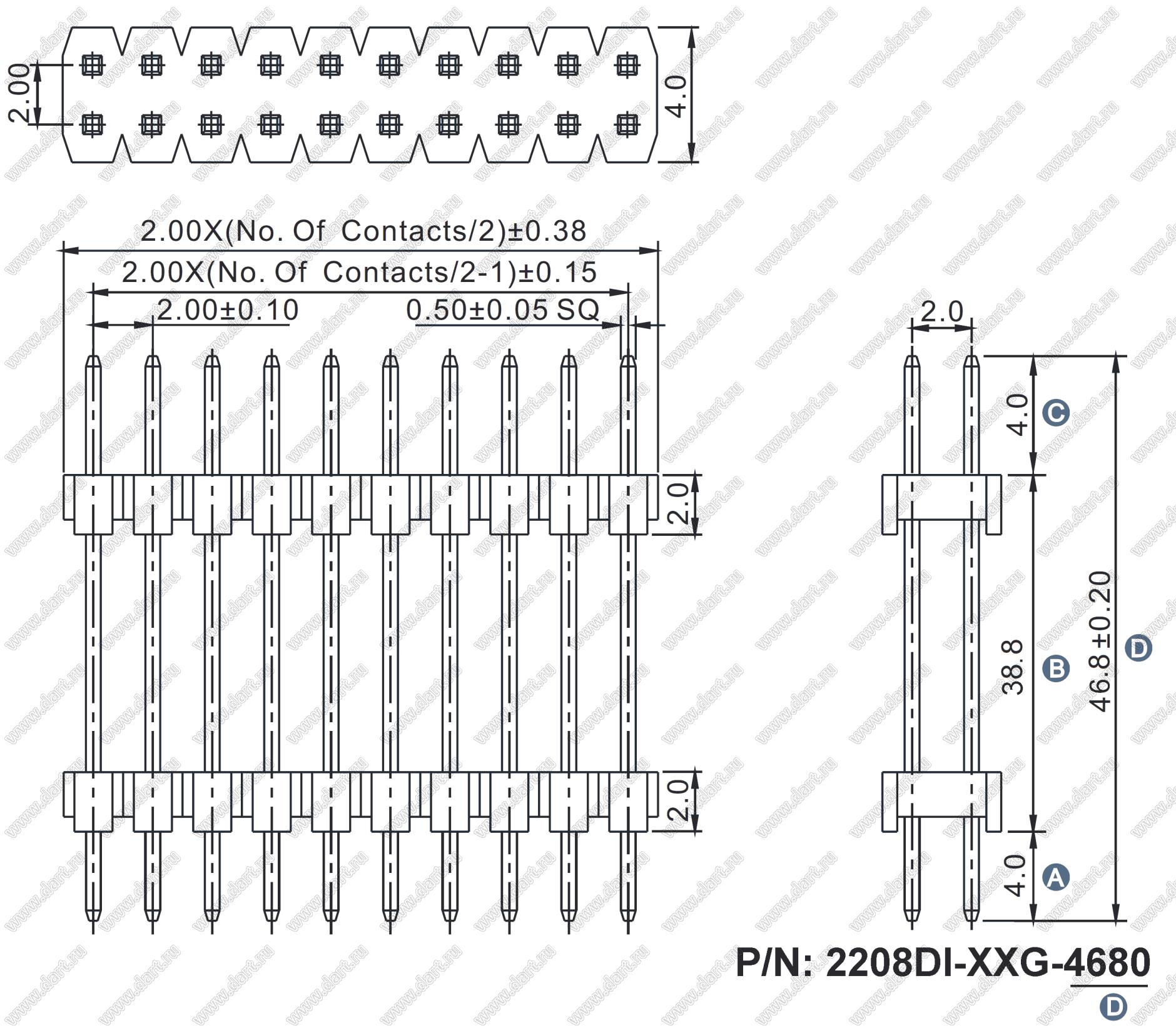 Каталог > Электронные компоненты, радиодетали > Разъёмы (соединители, переходники) > Разъемы плата-плата (межплатные) > шаг 2,00x2,00 мм (разъемы межплатные штыревые и гнезда для них) > двухрядные > 2208DI-XXG-4680 серия > 2208DI-30G-4680 (2x15)