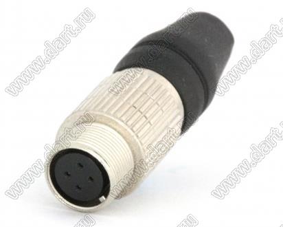 гнездо HIROSE на кабель; d отв.=мм; ; 4 контакта