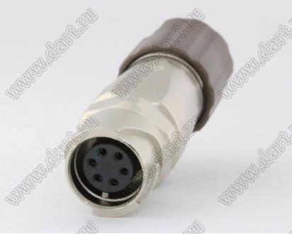 гнездо HIROSE на кабель; d отв.=мм; ; 6 контактов