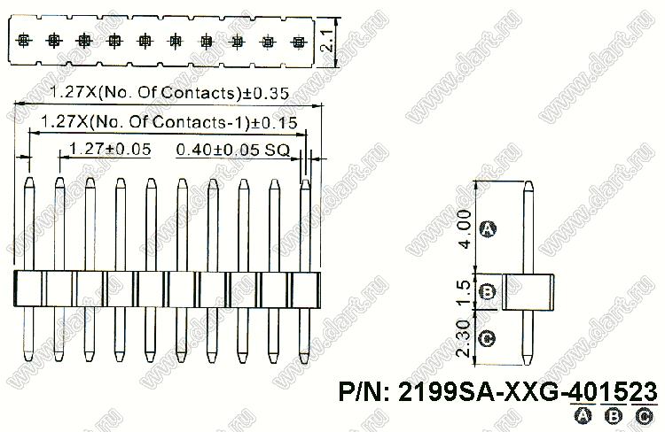Каталог > Электронные компоненты, радиодетали > Разъёмы (соединители, переходники) > Разъемы плата-плата (межплатные) > шаг 1,27x1,27 мм (разъемы межплатные штыревые и гнезда для них) > однорядные > 2199SA-XXG (PLL1.27) серия > 2199SA-50G-401523 (PLL1.27-50)