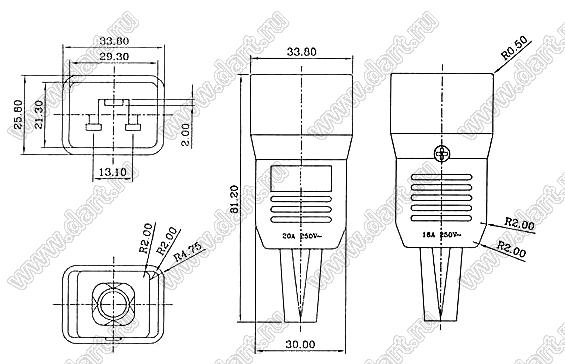 Каталог > Электронные компоненты, радиодетали > Разъёмы (соединители, переходники) > Разъемы AC (разъемы сетевого питания) > Трехполюсные разъемы сетевого питания > IEC 60320 C19/C20 > SPB-2000-N