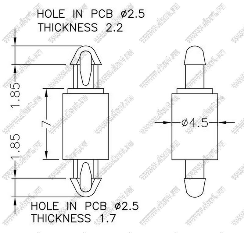 Каталог > Фурнитура для электронных устройств > Фиксаторы плат, стойки межплатные > Фиксаторы под круглое отверстие > Фиксаторы с двумя защелками > Прочие > MAMDF-7