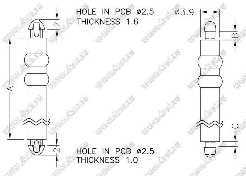 Каталог > Фурнитура для электронных устройств > Фиксаторы плат, стойки межплатные > Фиксаторы под круглое отверстие > Фиксаторы с двумя защелками > MAC серия > MAC-40S