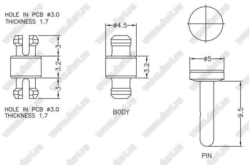 Каталог > Фурнитура для электронных устройств > Фиксаторы плат, стойки межплатные > Фиксаторы под круглое отверстие > Фиксаторы с двумя защелками > MSPC3-3.2 серия > MSPC3-3.2
