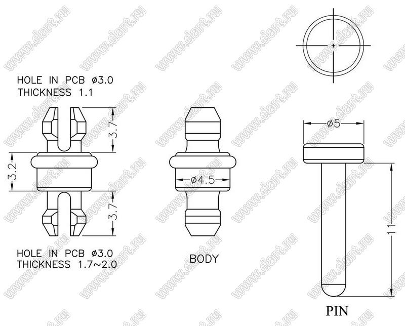 Каталог > Фурнитура для электронных устройств > Фиксаторы плат, стойки межплатные > Фиксаторы под круглое отверстие > Фиксаторы с двумя защелками > MSPC3-3.2 серия > MSPC3-3.2L