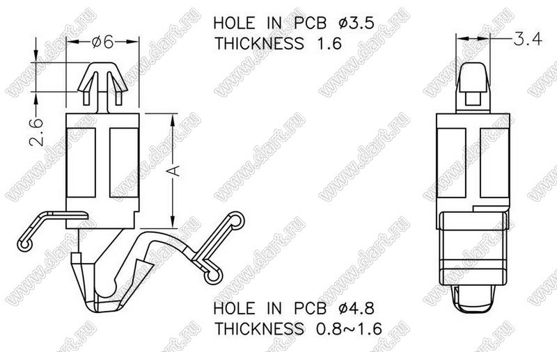 Каталог > Фурнитура для электронных устройств > Фиксаторы плат, стойки межплатные > Фиксаторы под круглое отверстие > Фиксаторы с двумя защелками > KLCBM серия > KLCBM-9.5