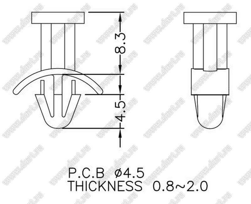 Каталог > Фурнитура для электронных устройств > Фиксаторы плат, стойки межплатные > Фиксаторы под круглое отверстие > Фиксаторы с защелкой в шасси > Прочее > LASD-8.3