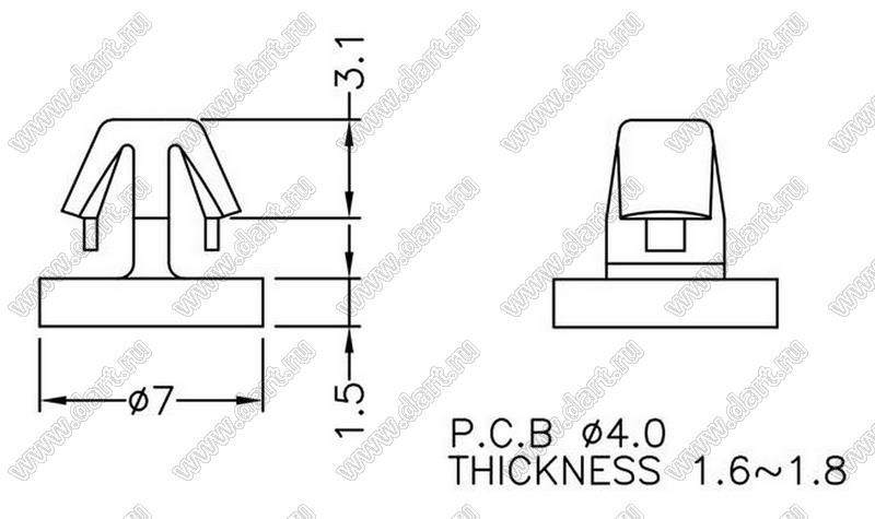 Каталог > Фурнитура для электронных устройств > Фиксаторы плат, стойки межплатные > Фиксаторы под круглое отверстие > Фиксаторы с защелкой в плату > MCE серия > MCE-1.9