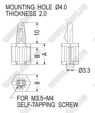 Каталог > Фурнитура для электронных устройств > Фиксаторы плат, стойки межплатные > Фиксаторы под круглое отверстие > Фиксаторы с защелкой в плату > BS серия > BS-10-1