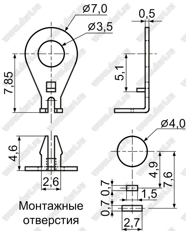 Каталог > Фурнитура для электронных устройств > Наконечники кабельные и клеммы FASTON россыпью в пакетах > Наконечники кабельные неизолированные россыпью в пакетах > Лепестки заземления > GND-15