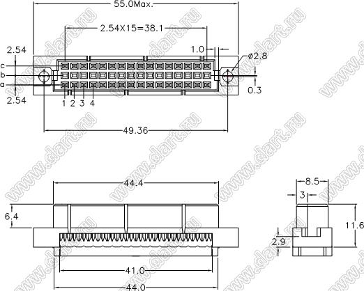 Каталог > Электронные компоненты, радиодетали > Разъёмы (соединители, переходники) > Соединители межплатные DIN 41612 > DIN 41612 розетки IDC > 9001-1632IDC00A (DIN 41612-32ABC-FS-IDC)