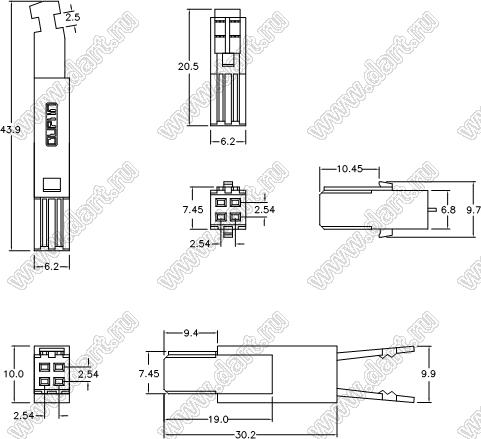 розетка IDC на плоской кабель с шагом 1.27 мм 2-х рядная; 4-конт.; P=2,54мм