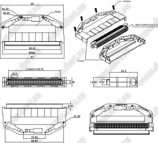 Каталог > Электронные компоненты, радиодетали > Разъёмы (соединители, переходники) > Соединители межплатные DIN 41612 > DIN 41612 розетки IDC > 9001-8296С10G1C2A (DIN 41612-96AB-FS-IDC)