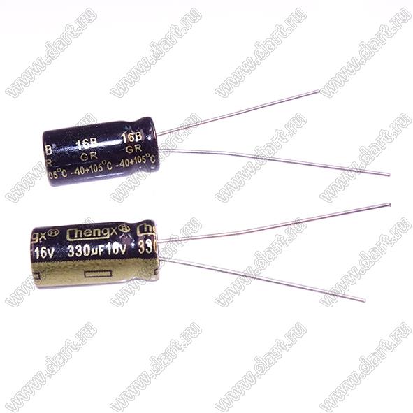 Каталог > Электронные компоненты, радиодетали > Конденсаторы > ECAP - конденсаторы алюминиевые электролитические радиальные > GR/GLR/TN серия > ECAP 330uF/16V 0611 105C GR (GR337M016E11RR0HP0)