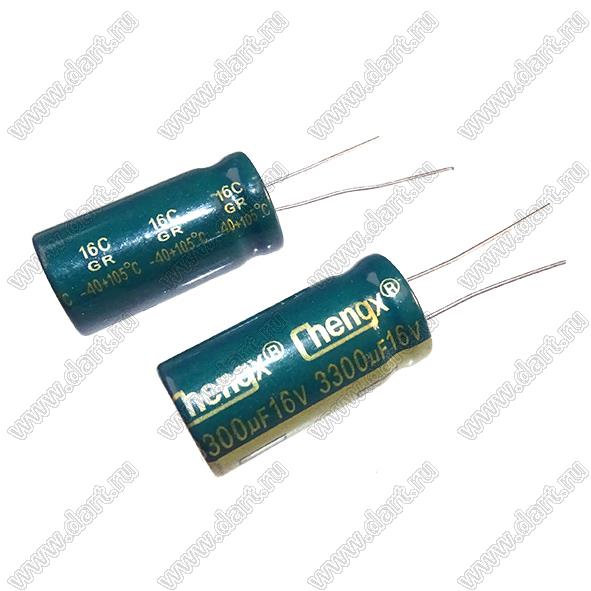 Каталог > Электронные компоненты, радиодетали > Конденсаторы > ECAP - конденсаторы алюминиевые электролитические радиальные > GR/GLR/TN серия > ECAP 3300uF/16V 1325 105C GR (GR338M016J25RR0HP0)
