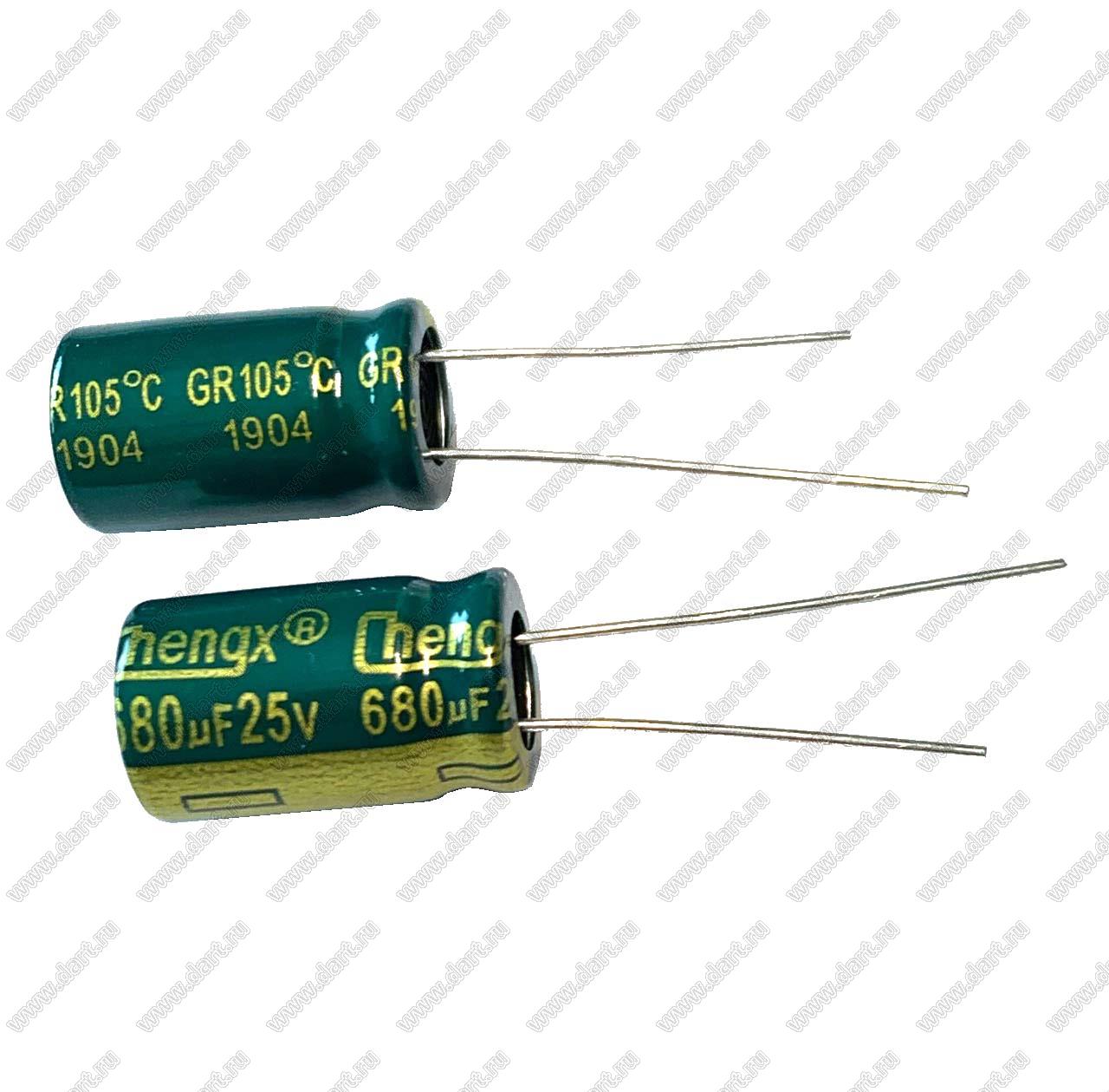 Каталог > Электронные компоненты, радиодетали > Конденсаторы > ECAP - конденсаторы алюминиевые электролитические радиальные > GR/GLR/TN серия > ECAP 680uF/25V 1017 105C GR (GR687M025G17RR0HP0)