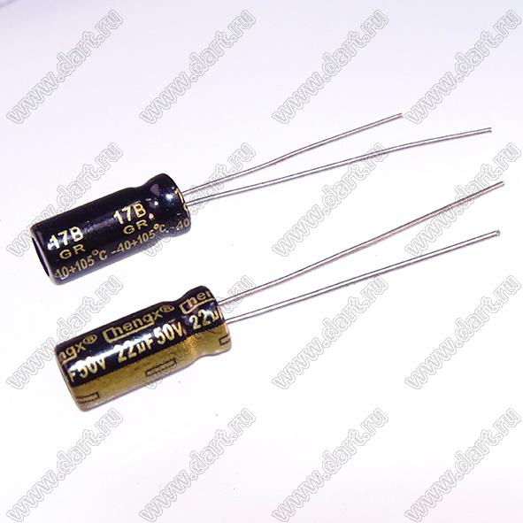 Каталог > Электронные компоненты, радиодетали > Конденсаторы > ECAP - конденсаторы алюминиевые электролитические радиальные > GR/GLR/TN серия > ECAP 22uF/50V 0511 105C GR (GR226M050D11RR0HP0)