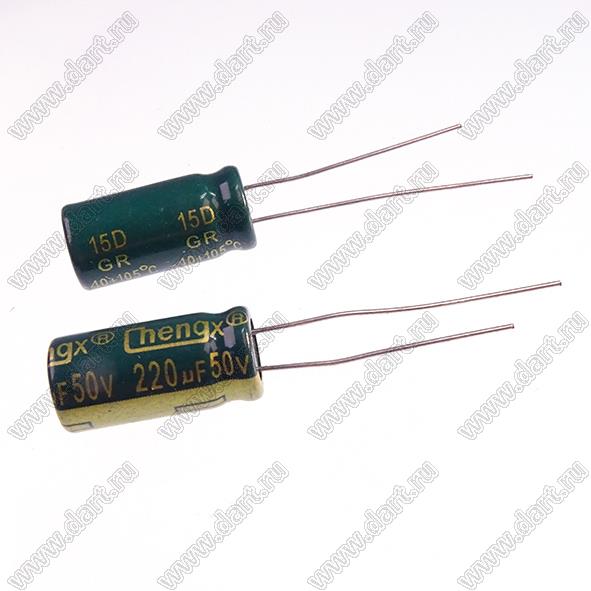 Каталог > Электронные компоненты, радиодетали > Конденсаторы > ECAP - конденсаторы алюминиевые электролитические радиальные > GR/GLR/TN серия > ECAP 220uF/50V 0816 105C GR (GR227M050F16RR0HP0)