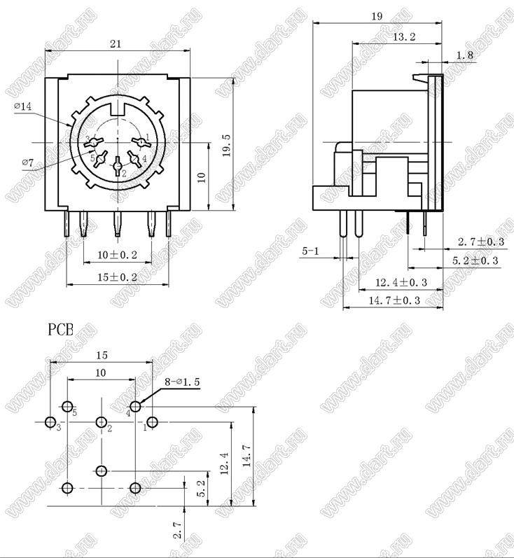 Каталог > Электронные компоненты, радиодетали > Разъёмы (соединители, переходники) > Разъемы DIN круглые > Розетки DIN на плату > DS-5-03-05